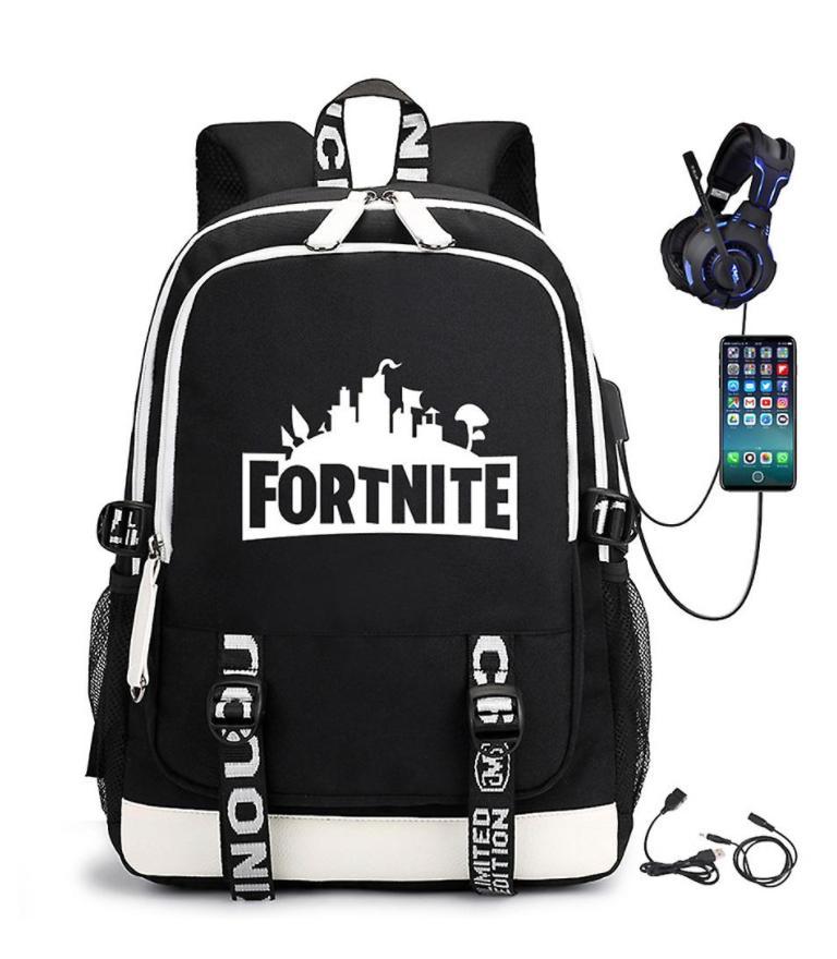 Fortnite ryggsäck - Vattentät Skolväska med USB och hörlursuttag.